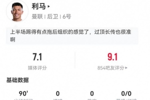体育资讯1月4日讯 曼联在本轮英超对阵利兹联,利马本场数据如下: