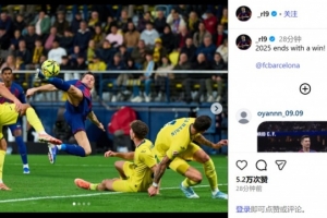 在社交媒体上,莱万晒出自己射门图庆祝胜利,他写道:以一场胜利结束2025年。