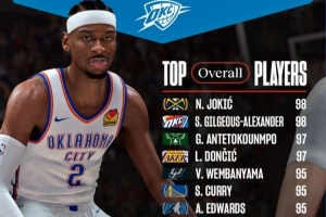 体育资讯12月24日讯 今日NBA 2K官方晒出了最新联盟能力值前十球员,具体如下: