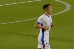 上半场补时阶段,吴曦接队友传中,禁区内上演神来之笔,一记灵巧的脚后跟磕球破门。