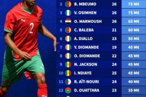 非洲杯球员身价榜:阿什拉夫8000万第一,姆伯莫、奥斯梅恩7500万