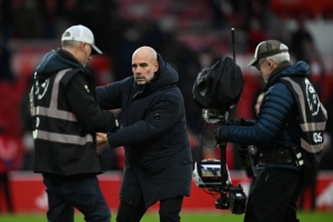 转播画面显示,瓜迪奥拉愤怒地举起手臂表达沮丧,并死死盯着镜头,随即用夸张的手势要求摄像师移到一边。直到摄像师让开道路,他才得以继续靠近看台,向球迷鼓掌。