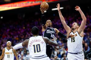 约基奇生涯三双数距离历史第二的大O仅差1个,而距离历史第一的威少也仅差27个!
