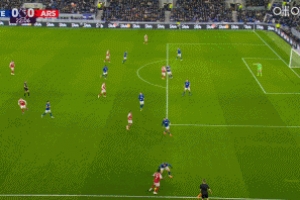 比赛第23分钟,廷伯传中,埃弗顿后卫奥布莱恩在小禁区内疑似推倒了抢点的约克雷斯,但裁判并未对此进行判罚,给了阿森纳角球;随后的角球中奥布莱恩手球送点,约克雷斯点射破门。